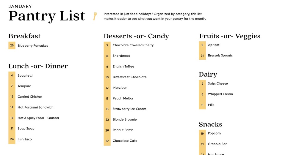 Our calendar is easy to use. Just turn to the day of the year that you want to celebrate and choose from a variety of activities that excite you. Here is an example of the page for January 7th: